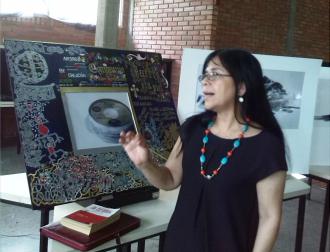 La exposición de la docente se convirtió en un interesante ejercicio didáctico en el que la doctora Lugo Marmignon enseñó a los alumnos el lacre que se utilizaba en la antigüedad para el sello de los documentos, la pluma de ganso con la que se ejercía la escritura, las imágenes recogidas en el rollo de fotografías, además de un cuadro o “cartel” en madera elaborado por la misma docente, en el cual se plasma todo el proceso vivido con la investigación y  escritura del libro, en el que están  plasmados los simbolismos inscrustados con distintos materiales en la madera y  que recogen las representaciones  de la energía y del parto vertical que se encontraron en petroglifos elaborados por los indígenas de Seboruco, las antiguas y actuales medidas de longitud utilizadas en el libro de registros –manuscrito- , el acta de la fundación de Bailadores, e incluso un fragmento de la partitura de un réquiem de Mozart.