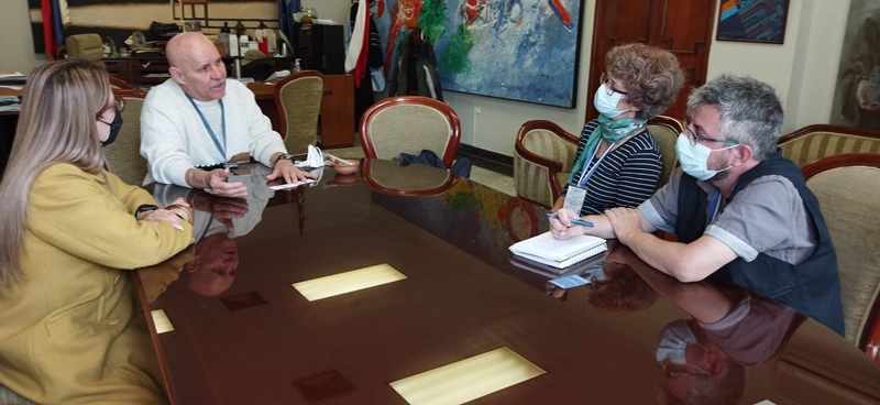 Rector ULA y Observadores a Largo Plazo de la Unión Europea, Gabor Basch y Jutta Regine Bangel, intercambian información en torno al proceso electoral del 21 de noviembre 2021. (Foto:Lander Altuve)