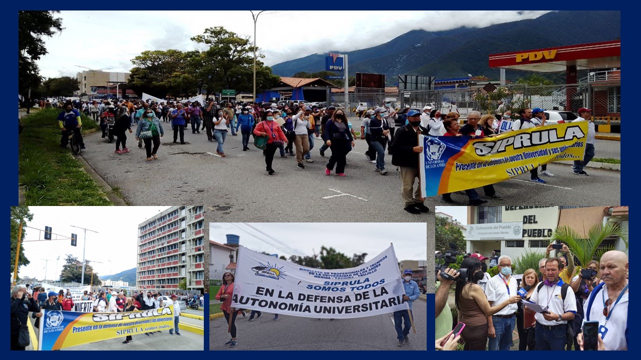 Desde el Edificio Administrativo de la Universidad de Los Andes (ULA) hasta la Defensoría del Pueblo, los ulandinos en Mérida, también marcharon este miércoles 25 de mayo de 2022 en protesta contra la degradación del salario y la exclusión de todos los beneficios contractuales, ejercida desde el Ministerio del Poder Popular de la Educación Universitaria (MPPEU).