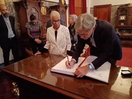 Al culminar el encuentro, el embajador Pellet firmo el libro de invitados especiales. (Prensa ULA/MP/9795 / Fotos: LA)