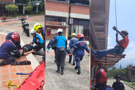 El comandante de los Bomberos-ULA, Teniente Coronel Manuel Rodríguez, explicó que dicha simulación consistió en el rescate de un lesionado, utilizando para ello las cornisas del Edificio del Rectorado.