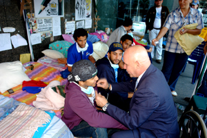 Una vez concluida la marcha universitaria que se realizó este martes en la ciudad de Caracas, el rector de la Universidad de Los Andes (ULA), Mario Bonucci Rossini, visitó a los universitarios que se encuentran en huelga de hambre en el Programa de las Naciones Unidas para el Desarrollo (PNUD), con el objeto de constatar su estado de salud. En ese sentido, Bonucci señaló que pudo apreciar cómo el tiempo ya hace su efecto en la salud de estos jóvenes, sin embargo, afirmó que mantienen un entusiasmo admirablemente elevado.