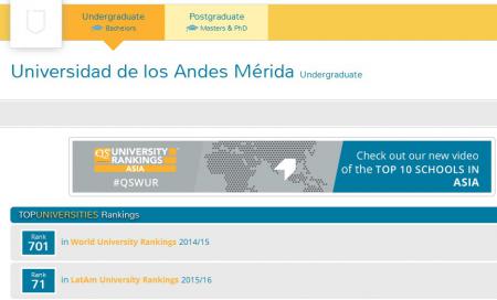 ULA permanece entre las mejores 100 universidades de Latinoamérica según QS University Rankings