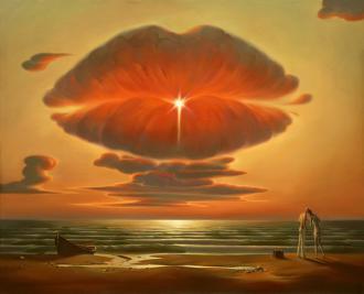 Beso de despedida, obra del artista surrealista ruso Vladimir Kush (1965)