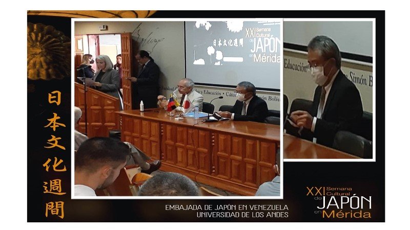 El encargado de negocios de la embajada de Japón en Venezuela, el Excelentísimo Señor, Kenya Uno, tras dos años de espera, abrió una nueva semana cultural del Japón en Mérida, el pasado martes 14 de junio de 2022 con la ponencia “Japón y La Asistencia Oficial para el Desarrollo”.