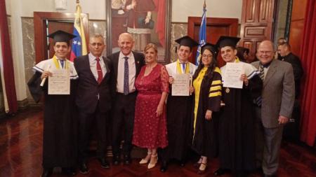En acto de grado realizado en el Aula Magna de esta casa de estudios, este 21 de febrero de 2025 , los tres hermanos estuvieron en el podio de mejores promedio académico, junto a otra egresada ulandina.